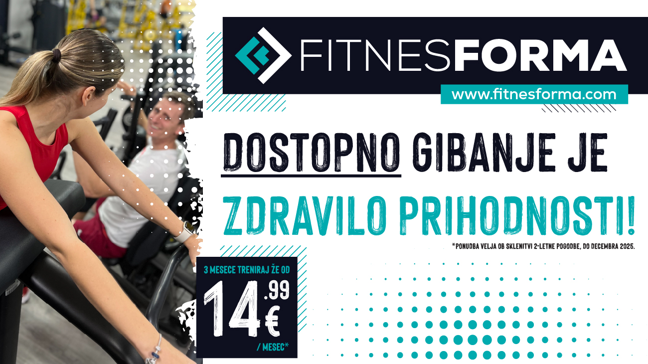 Od 15. septembra do 30. decembra 2025 lahko z 2-letno pogodbo v Fitnes Forma treniraš do konca leta za izjemno ceno – le 14,99 € na mesec!